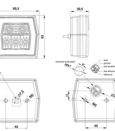 LED compact achterlicht zonder kentekenverlichting | 12-36v | 5-PIN | V10C3-710B5
