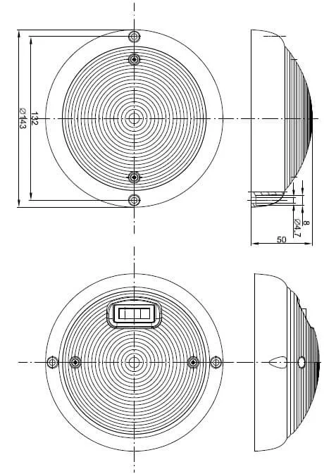 Afmetingen ø143 x 50mm