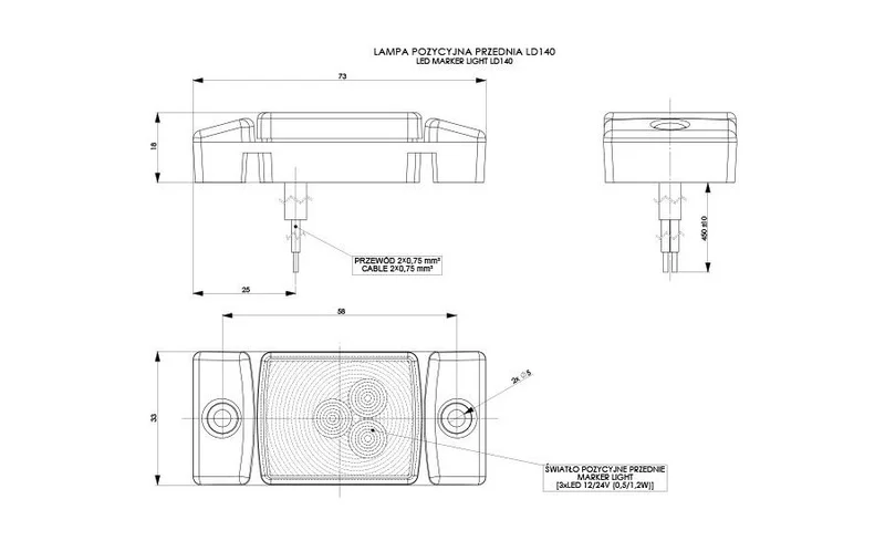 LED Markeerlicht wit incl. beugel 12/24v 50cm kabel