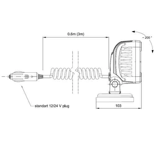 LED werklamp 1000 lumen op magn.voet 12/24v 3.0m krulsnoer