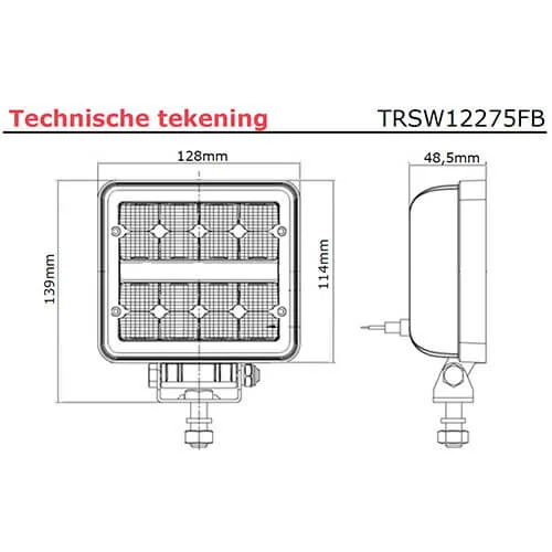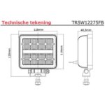 De TRSW12275FB LED werklamp uit de TRALERT® Onix Series is uitgevoerd met de nieuwste RFT (Reflector Facing Technology) lenstechniek. Deze technologie zorgt voor een zeer efficiënte lichtspreiding, strooilicht is niet aan de orde. Door het in tegengestelde richting plaatsen van de LED op reflector wordt een zeer gerichte lichtstraal gecreëerd, hierdoor is het ook onnodig om zware LED’s te gebruiken. De Philips LED chips van elk 1,5 Watt leveren voldoende lichtopbrengst op om gezamenlijk tot een lichtsterkte van 2272 lumen te komen. Naast de RFT-techniek is deze lamp uitgevoerd met een groot voltagebereik (tot 36 volt) IP68 en een heldere PMMA lens.