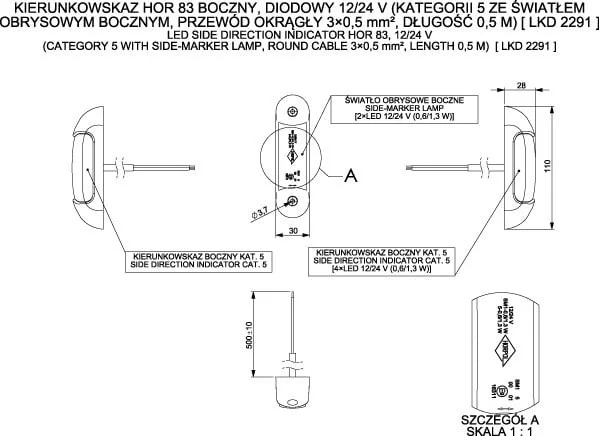 LED Zij-markering met knipperlicht CAT5 12/24v 50cm kabel
