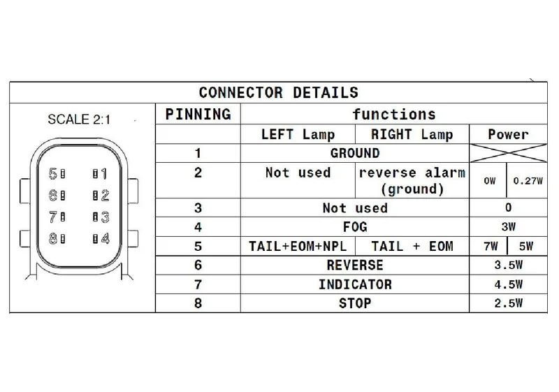 | Lichtfuncties | Achterlicht, Remlicht, Knipperlicht, Mistlicht, Achteruitrijlicht |